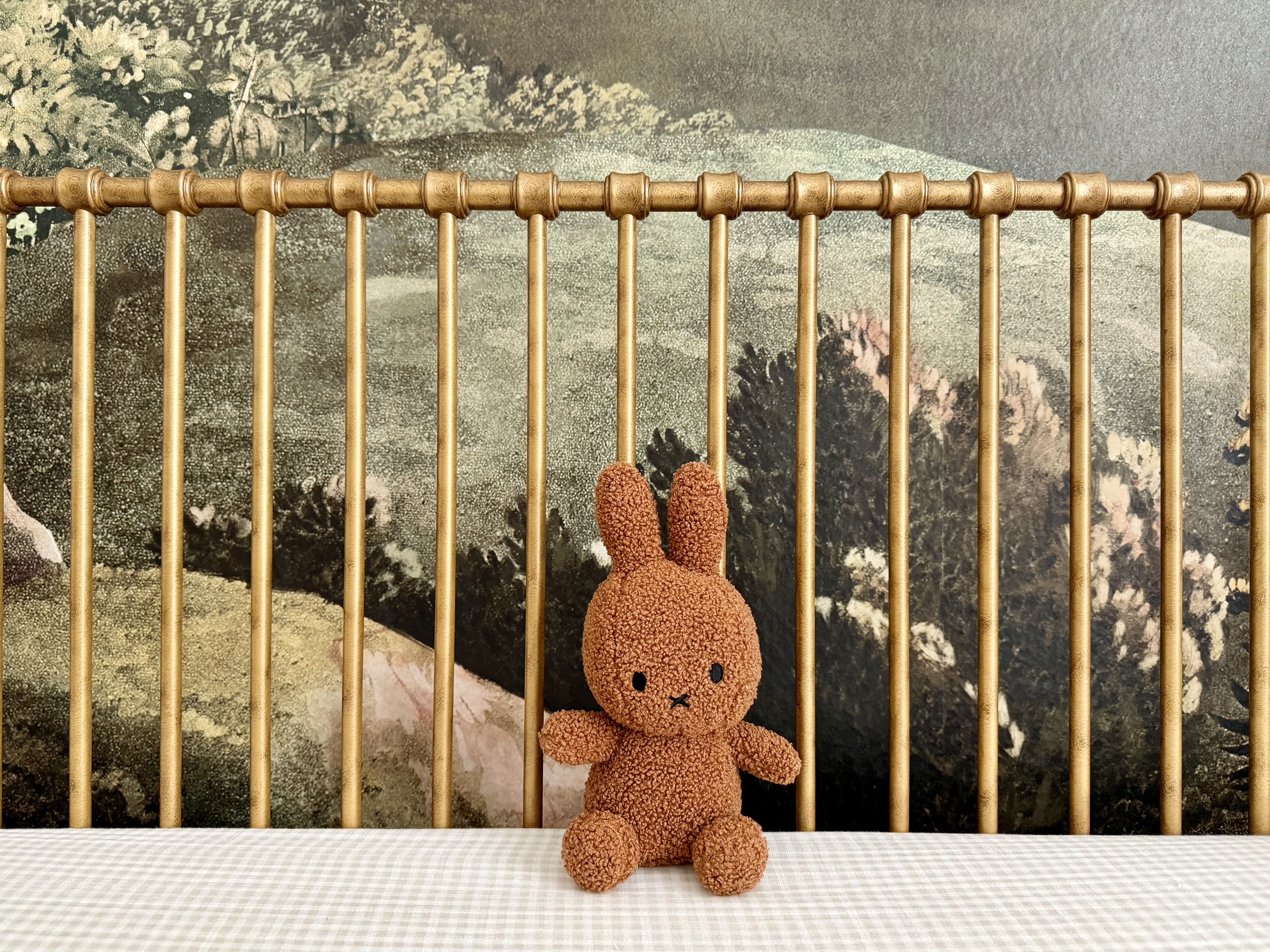 A softly layered nursery designed with warm neutrals, subtle texture, and thoughtful styling.